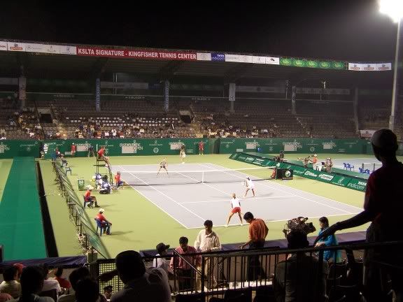 Coming to crowd response, frankly I expected much lower turnout with the really depleted entry field. Even though the crowd was mainly for Sania's matches but quite a few of them stayed back for other matches unlike in Hyderabad last year where you had even players like Navratilova was made to play in front of mostly empty stands. But I think this was more due to people made to pay money here and so they want to get the most out of it unlike in Hyderabad where they just had to muscle their way through in and walkout anytime they want as no money was charged. Afternoon matches had hardly any spectators other than the organizers which was a bit disappointing.